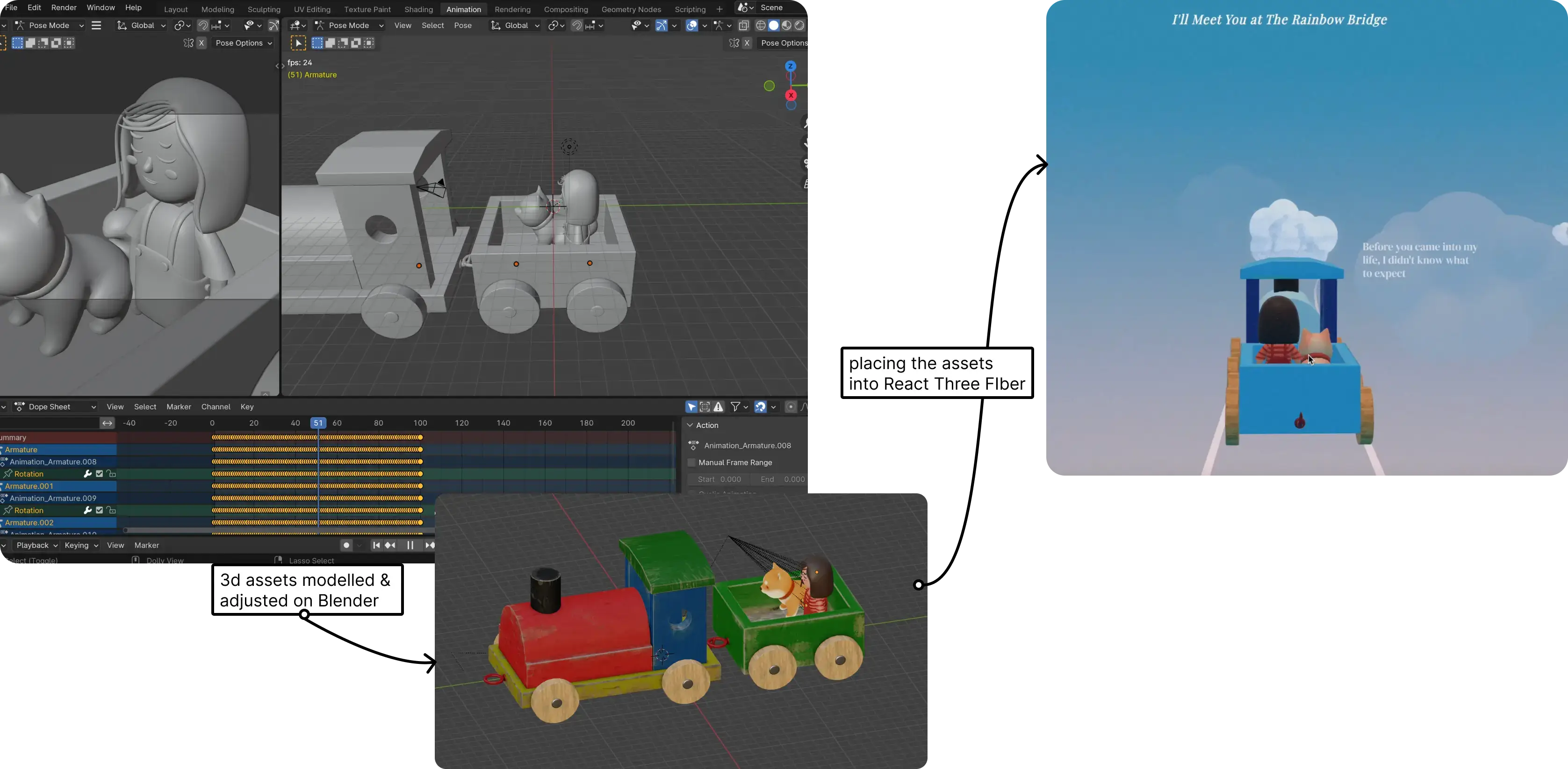 Inspired by the comforting idea of the Rainbow Bridge, a place where pets and their guardians reunite in joy, this web-based virtual world offers a space to honor departed companions and find solace within a community bound by shared loss.